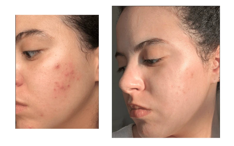من أول أسبوع الاحمرار هدى، وبعد أسبوعين الحبوب ما عاد تزيد. والحين تقريبًا شهر، بشرتي أهدى بكثير وصرت أطلع بدون فلتر لأول مرة من زمان. الحمد لله حسّيت وجهي رجع يتنفس.